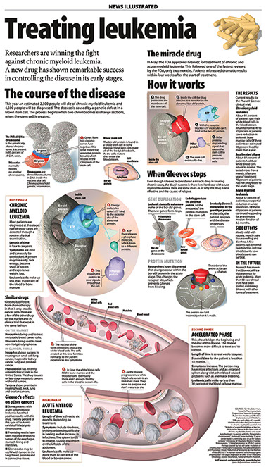 This is a story of research to clinical trial to use. Gleevec was developed and proven effective in treating chronic myeloid leukemia. I did this page as a tribute to my father who took this drug when it was first released.